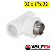 Тройник комбинированный с накидной гайкой Valfex 32 х 1 х 32. Белый