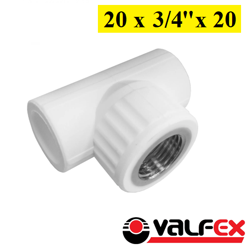 Тройник комбинированный с внутренней резьбой Valfex 20 х 3/4 х 20. Белый