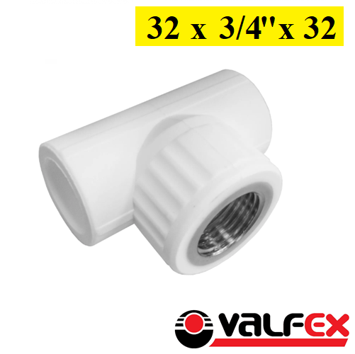 Тройник комбинированный с внутренней резьбой Valfex 32 мм х 3/4" х 32 мм белого цвета, предназначен для систем водоснабжения и отопления. Обеспечивает боковой переход с основной магистрали на дюймовую резьбу. Производится методом литья под давлением, а латунные части производятся методом горячего штампования.