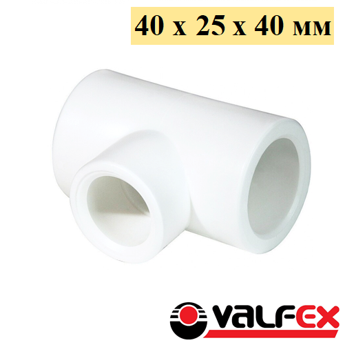 Тройник полипропиленовый переходной Valfex 40 х 25 х 40 мм. Белый