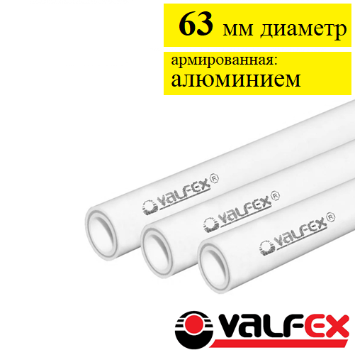 Купить полипропиленовую трубу армированную алюминием Valfex 63 мм белого цвета (арт. 10104063) в отрезках по 2 или 4 метра можно в нашем магазине tm24.by с доставкой в любой город. Мы предлагаем трубу полипропиленовую армированную алюминием Valfex 63 мм SDR 6 (PN 25) прямо от производителя с гарантией, а наши сотрудники подскажут, какой тип трубы Вам нужен.