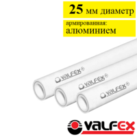Труба полипропиленовая армированная стекловолокном Valfex диаметром 25 мм белого цвета, предназначена для транспортировки холодной и горячей воды, системы отопления. Полипропиленовая труба Valfex отличается простотой и надежностью монтажа, используется технология сварки. Цена указана за 1 метр погонный, отрезки трубы по 2 или 4 метра.