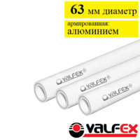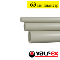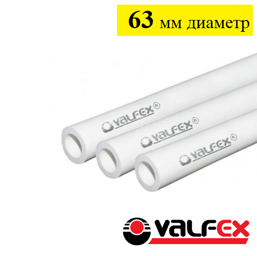 Труба полипропиленовая Valfex диаметром 63 мм белого цвета, предназначена для транспортировки холодной воды. Полипропиленовая труба Valfex отличается простотой и надежностью монтажа, используется технология сварки. Цена указана за 1 метр погонный, отрезки трубы по 2 или 4 метра.