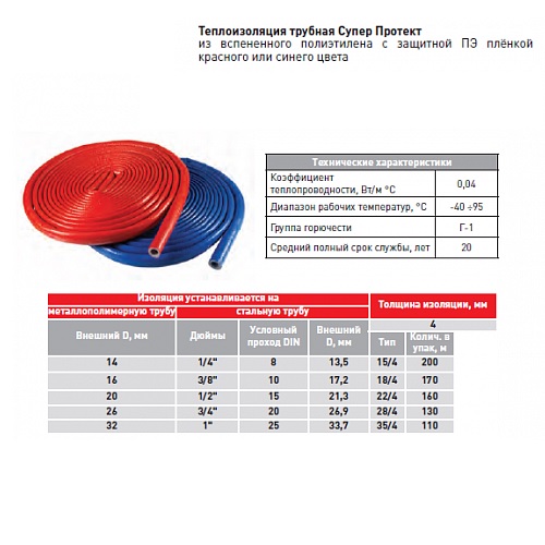 7. Для цветового отличия трубопроводов, Valteс "Супер Протект" выпускается с красной и синей оболочкой.