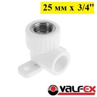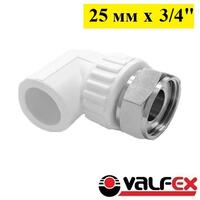 Угольник комбинированный для радиатора с американкой (наружная резьба) Valfex 25 мм х 3/4" белого цвета, предназначен для транспортировки холодной и горячей воды, системы отопления. Служит для присоединения полипропиленовой трубы к радиатору с внутренней резьбой под углом 90 градусов. Производится методом литья под давлением, а латунные части производятся методом горячего штампования.