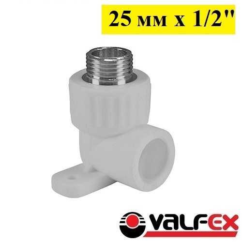 Угольник комбинированный для смесителя с наружной резьбой Valfex 25 мм х 1/2" серого цвета, предназначен для транспортировки холодной и горячей воды, системы отопления. Служит для присоединения водопроводной арматуры, смесителей и нагревателей. Производится методом литья под давлением, а латунные части производятся методом горячего штампования.
