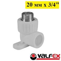Угольник комбинированный для смесителя с внутренней резьбой Valfex 20 мм х 3/4" белого цвета, предназначен для транспортировки холодной и горячей воды, системы отопления. Служит для присоединения водопроводной арматуры, смесителей и нагревателей. Производится методом литья под давлением, а латунные части производятся методом горячего штампования.