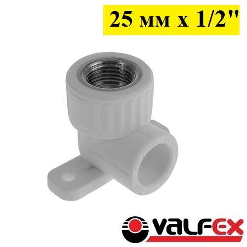 Угольник комбинированный для смесителя с внутренней резьбой Valfex 25 мм х 1/2" серого цвета, предназначен для транспортировки холодной и горячей воды, системы отопления. Служит для присоединения водопроводной арматуры, смесителей и нагревателей. Производится методом литья под давлением, а латунные части производятся методом горячего штампования.
