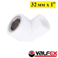 Угольник с накидной гайкой Valfex 32 мм х 1 1/4. Белый
