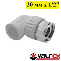 Угольник комбинированный с наружной резьбой Valfex 20 мм х 1/2. Белый