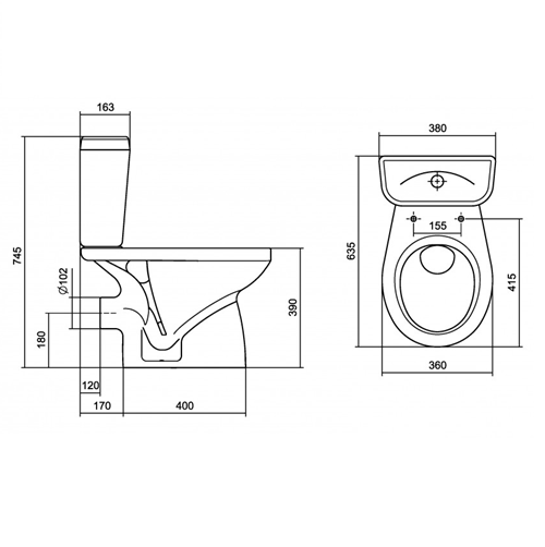 2. Форма унитаза: овальная.