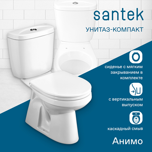 Купить унитаз Santek Анимо 1WH302136 в магазине tm24 по цене производителя можно заказав через интернет-корзину на сайте или прийти в наш магазин. Осуществляем доставку по всей стране.