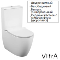 Унитаз напольный Vitra S50 Rim-ex безободковый пристенный с сиденьем микролифт. 9797B003-7204