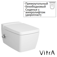 Унитаз подвесной Vitra Nest Rim-ex безободковый с функцией биде, встроенным смесителем, с бачком VitrA Fresh и сиденьем микролифт.