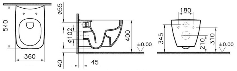 1. Унитаз настенный для инсталляции.