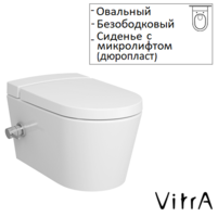 Интеллектуальный подвесной унитаз Vitra V-Care Basic для установки к системе инсталляции в комплекте с сиденьем и пультом управления. Высокое качество изготовления из сверхпрочного фарфора, покрыт глазурью белового цвета VitrA Hygiene.