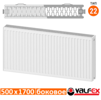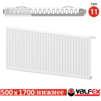 Valfex Steel C11 500х1700 радиатор стальной, боковое подключение, предназначен для применения в закрытых независимых однотрубных и двухтрубных системах водяного отопления жилых, административных и общественных зданий. Изготовлен из качественной холоднокатаной стали толщиной 1.2 мм. Теплоотдача радиатора 1969 Вт при ∆t - 70 ºС.