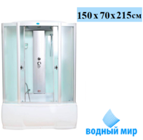 Водный мир ВМ-8206 душевая кабина, размер 150x85 см. Универсальная ориентация кабины, что подходит для любого расположения. Высокий поддон (ванна) из акрила, армированного стекловолокном. Кабина оснащена раздвижными дверями из закаленного стекла. Для передних стенок используется тонированное стекло, для задних используется стекло чёрного цвета.