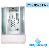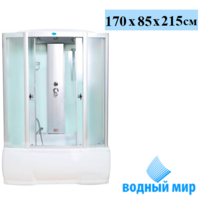 Водный мир ВМ-8206 душевая кабина, размер 170x85 см. Универсальная ориентация кабины, что подходит для любого расположения. Высокий поддон (ванна) из акрила, армированного стекловолокном. Кабина оснащена раздвижными дверями из закаленного стекла. Для передних стенок используется матовое стекло, для задних используется стекло белого цвета.