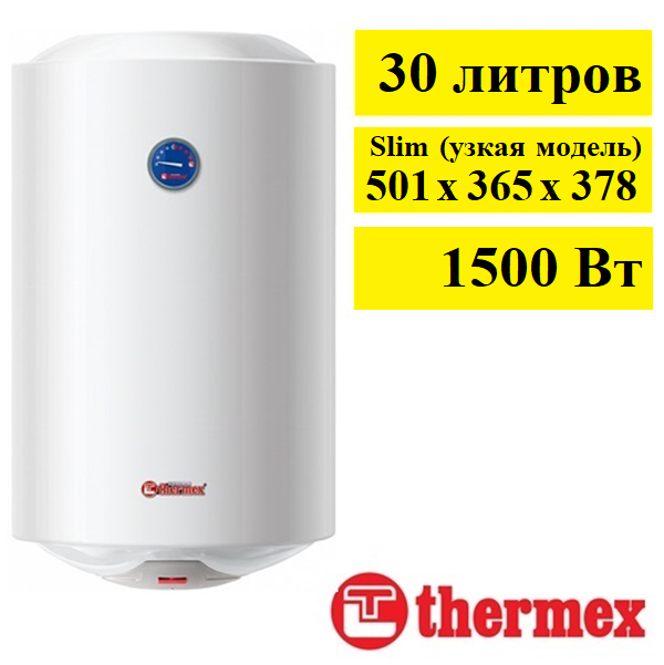 Водонагреватель электрический Thermex CHAMPION ES 30 V является классической круглой моделью с узким диаметром и имеет высококачественное покрытие водяного бака - биостеклофарфор, толщина стенки бака 2 мм.
